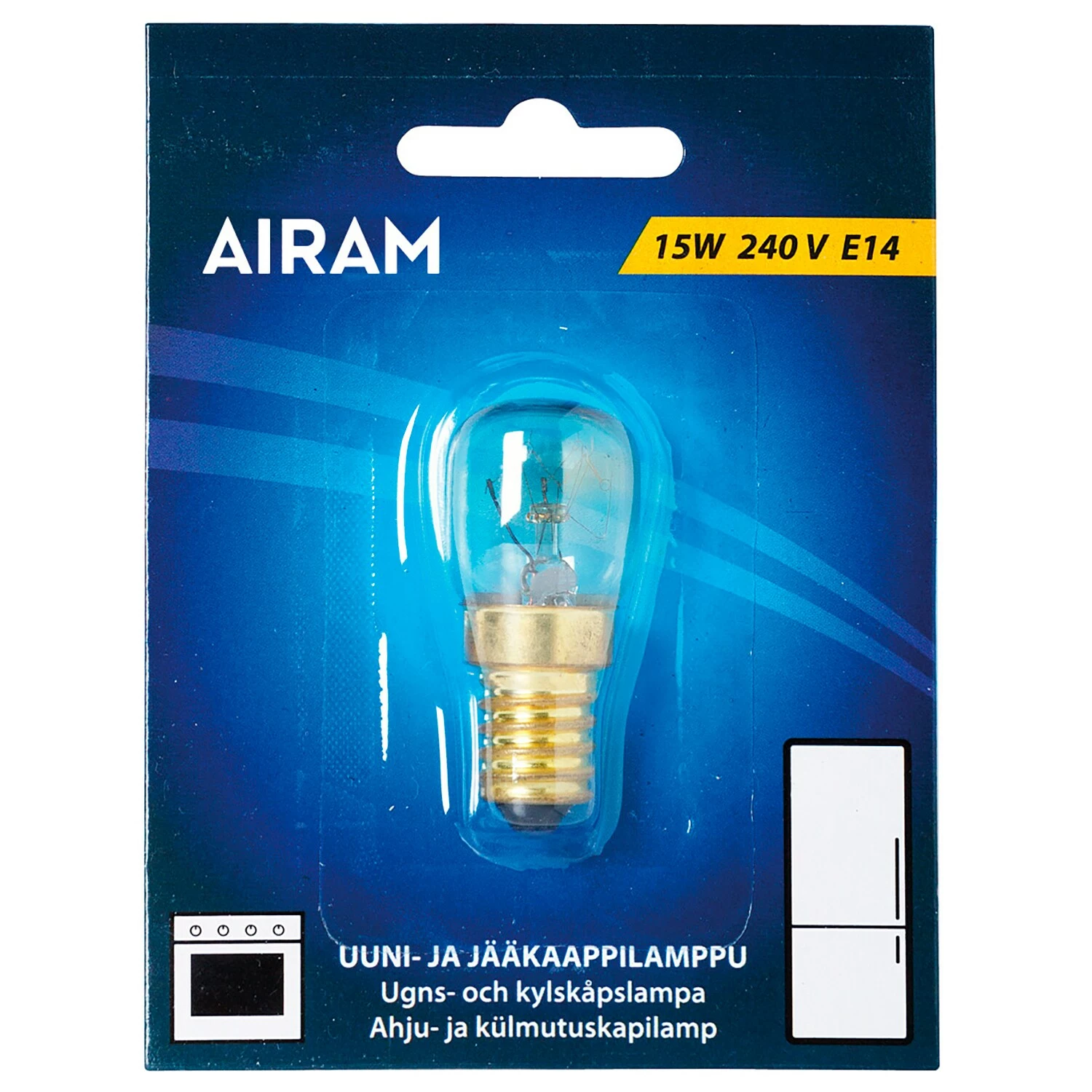 Oven lamp E14 15W from Airam. A reliable lamp with a burning time of 1000 hours. The lamp can withstand up to 300 ° C.