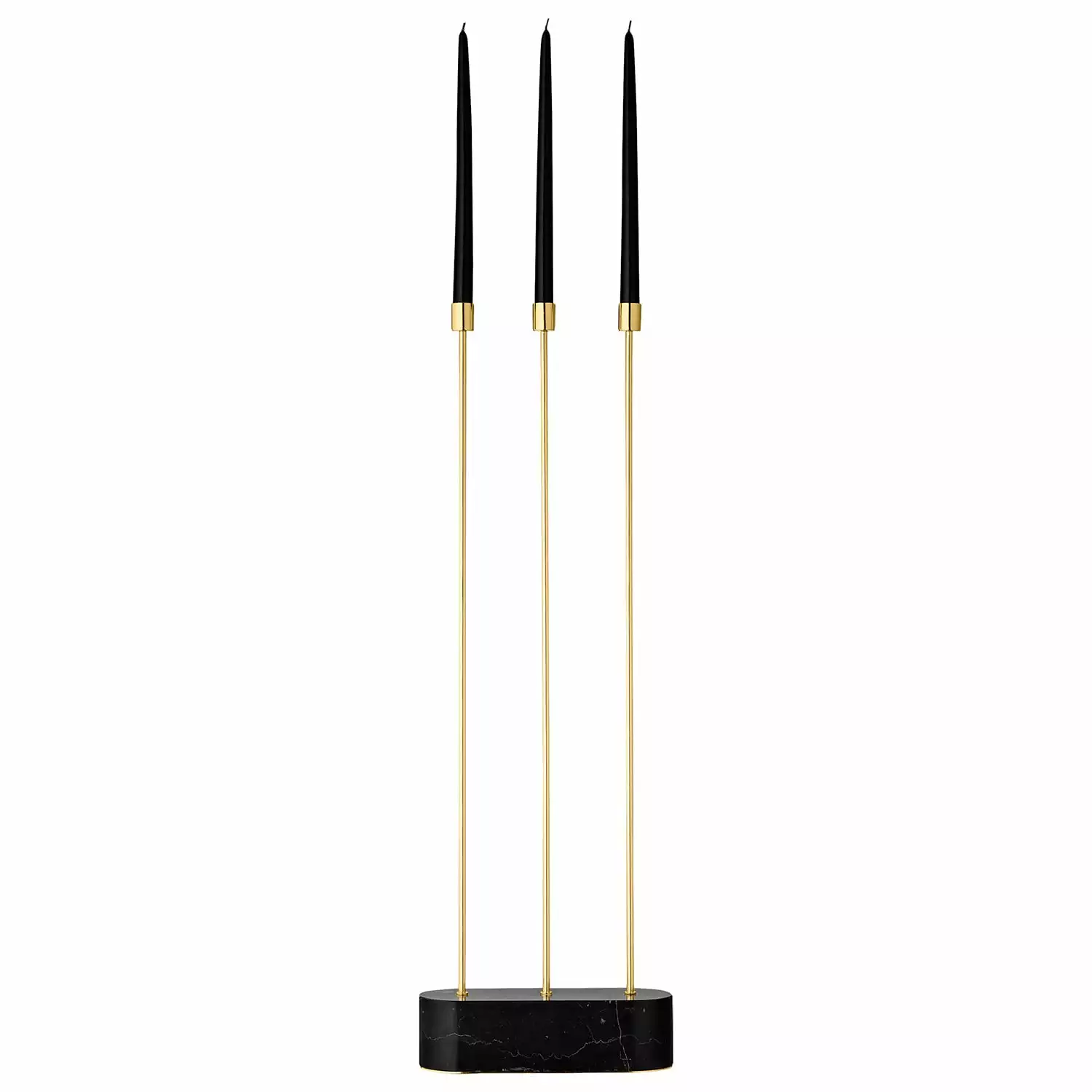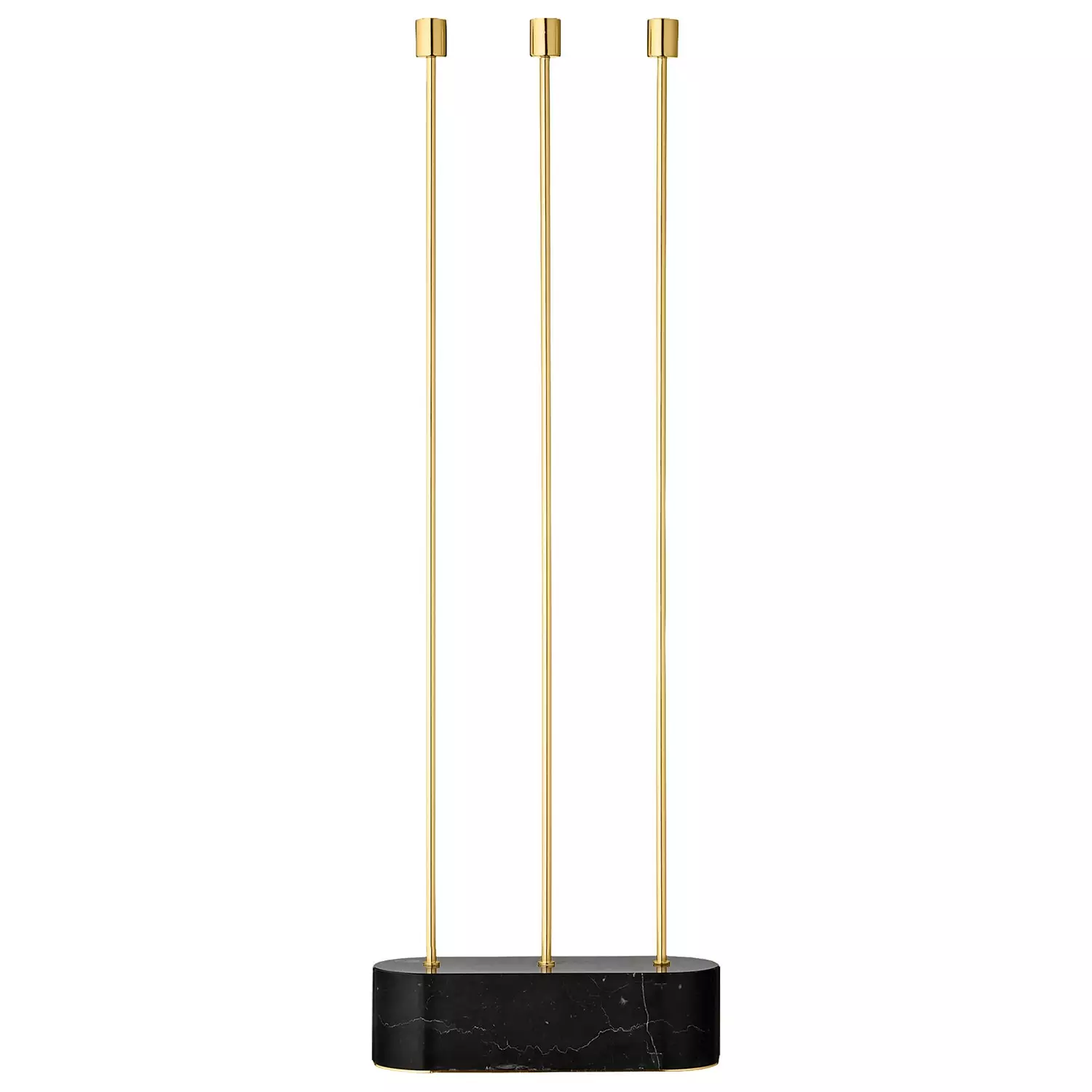 Aytm Grasil kaarshouder voor op de vloer is verkrijgbaar in twee verschillende kleurencombinaties, een zwarte en een zwarte met messing geplateerde ijzeren armen. De zware voet van marmer zorgt ervoor dat hij stevig op de vloer staat zonder risico op omvallen.