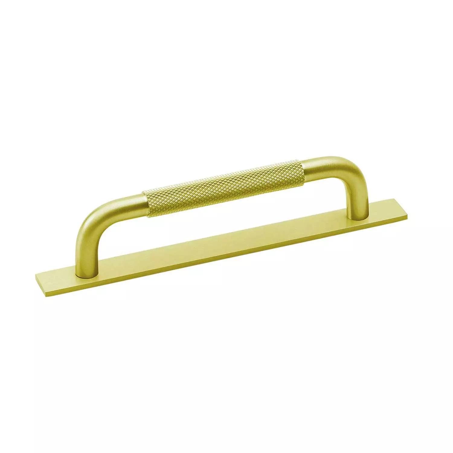 Helix handle with plate from Beslag Design has a beautiful, knurled surface for better grip and an exclusive feel. The handle is made of aluminum, which gives it a comfortable, light weight. Available in different lengths and colours.