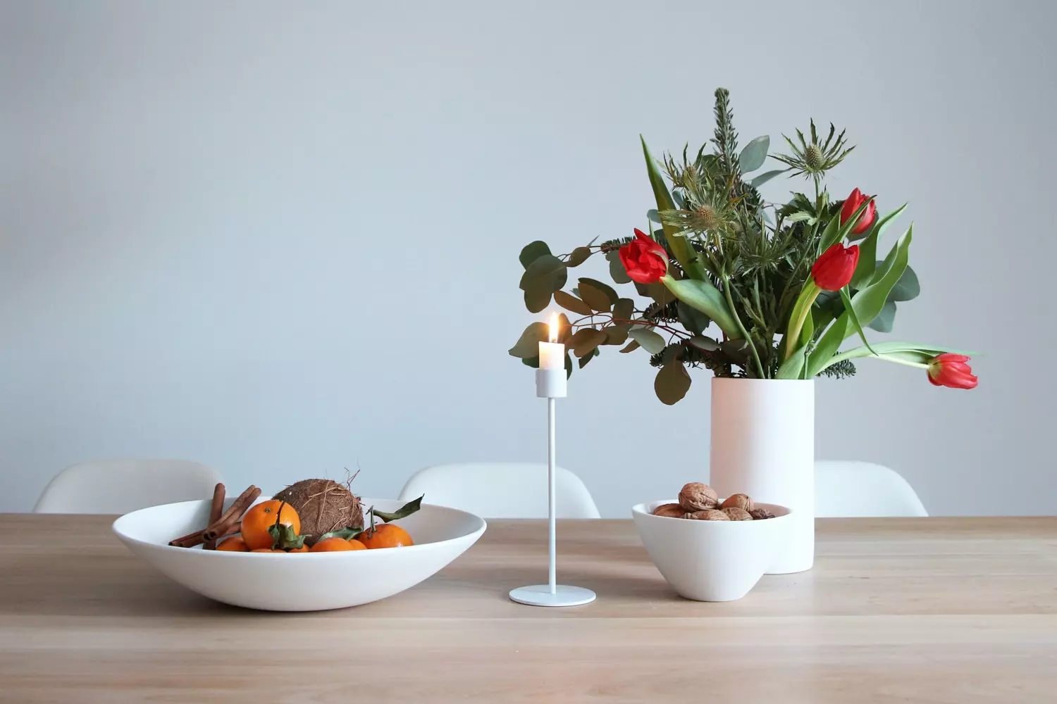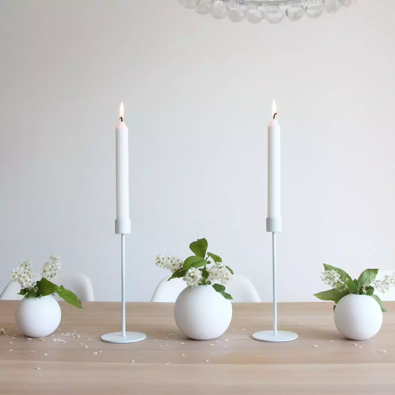 De kandelaar van Cooee Design heeft een elegant ontwerp van roestvrij staal met een lange voet, perfect voor het creëren van een aangename sfeer in iedere kamer. Kies uit verschillende kleuren.