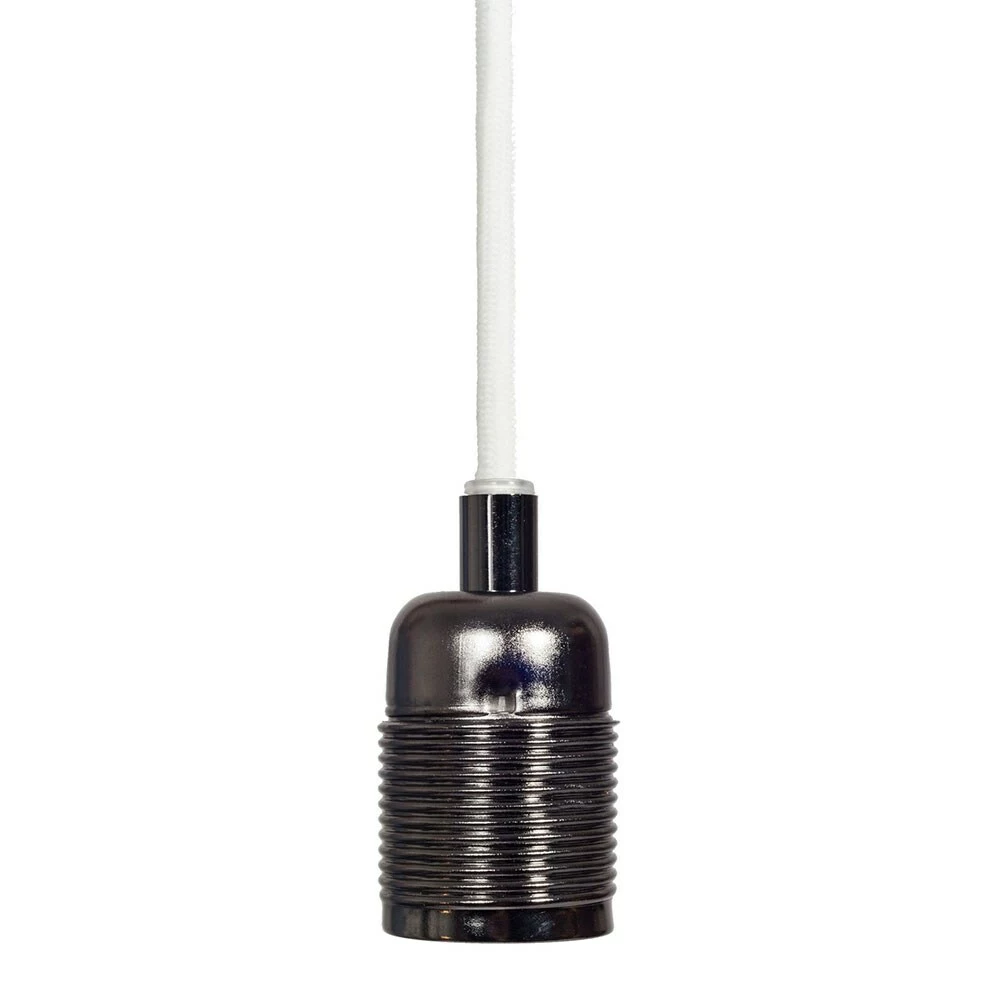 Frama E27 cord with socket from Frama. A smart and simple pendant for a decorative light bulb. The simple can was probably so good! It is designed to act as a ceiling light and has an industrial design. The mount is in copper with black textile cord. Total length 3m. Power plug is not included.