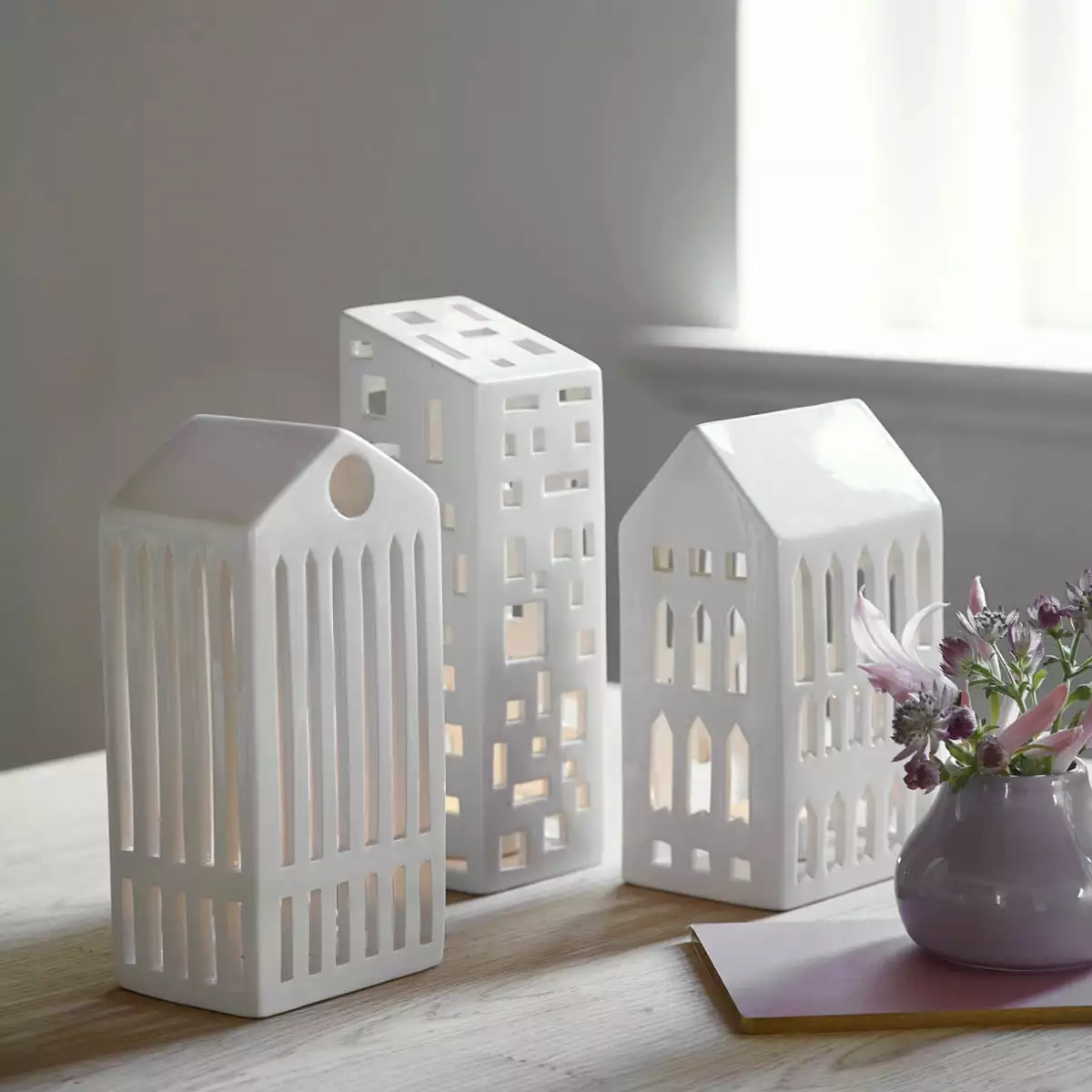 Pentheon candle holder shapes a fantastic shine and long shadows that get a waving movement in the windowsill. The shapes and lines have been inspired by Rome’s most well-preserved building and become a magical detail in the room. The votive is part of the Urbania-series and is beautiful to place by itself, or together with more houses to create a cozy city.