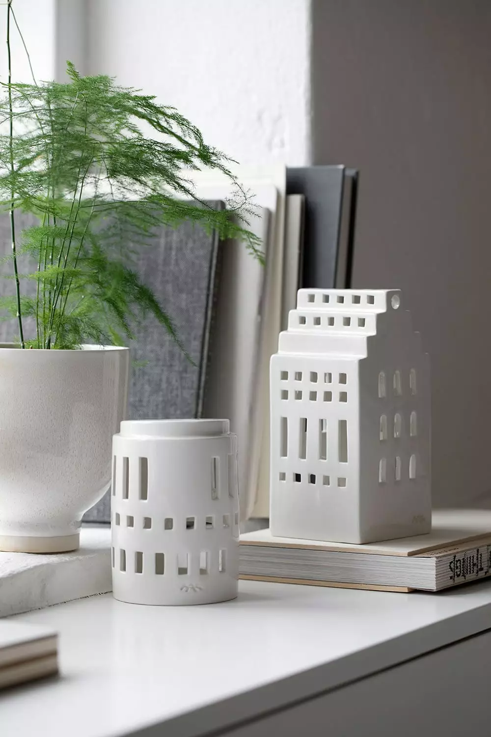Urbania Little Tower is a tea light holder that has a distinctive expression and is a very cozy detail to have in the room. The light glows beautifully through the handmade windows. Build your own little city by placing your favorite houses in different sizes next to each other. Fits perfectly on the windowsill, on the table or at the sideboard in the hall for a warm welcome.