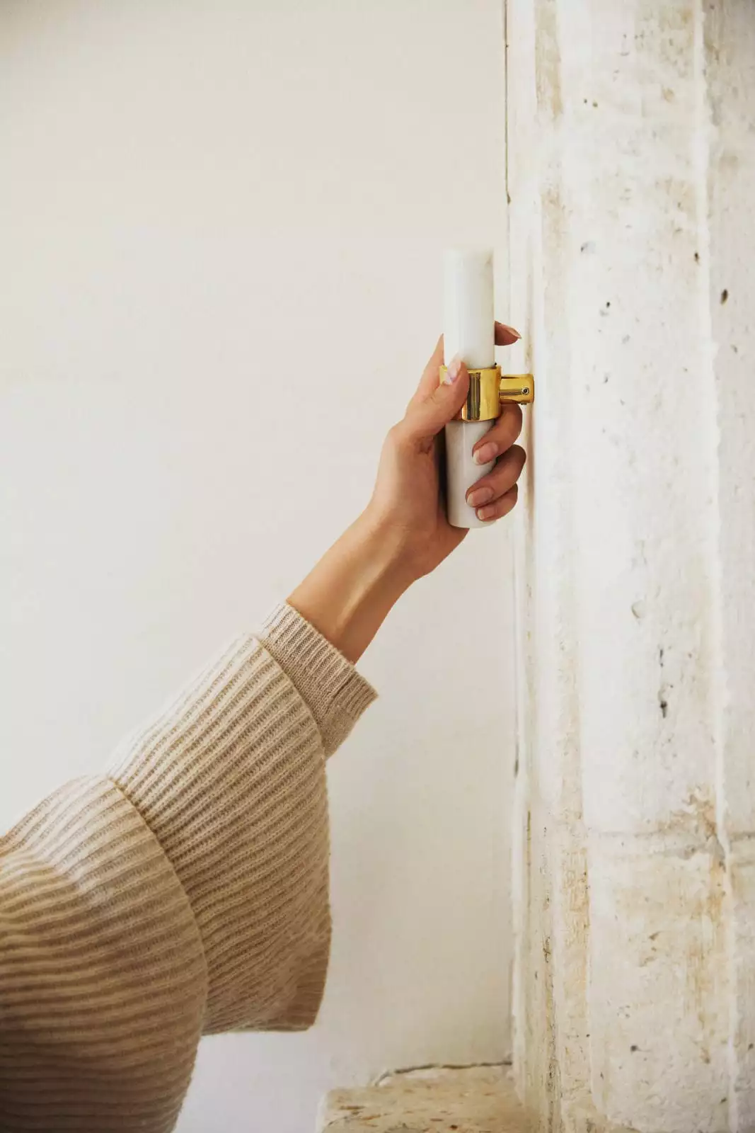 Baton is an elegant fireplace damper handle made om either green or white marble with details in brass. The solid handle gives you a good grip to fascilitate adjusting the damper.