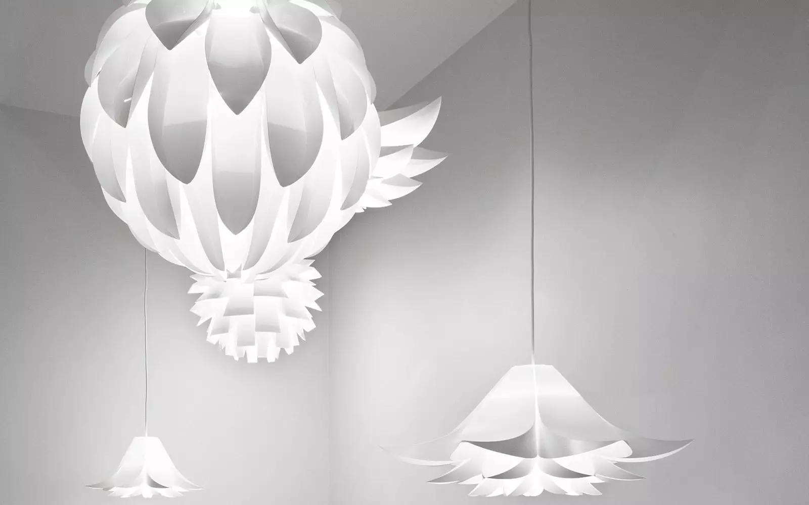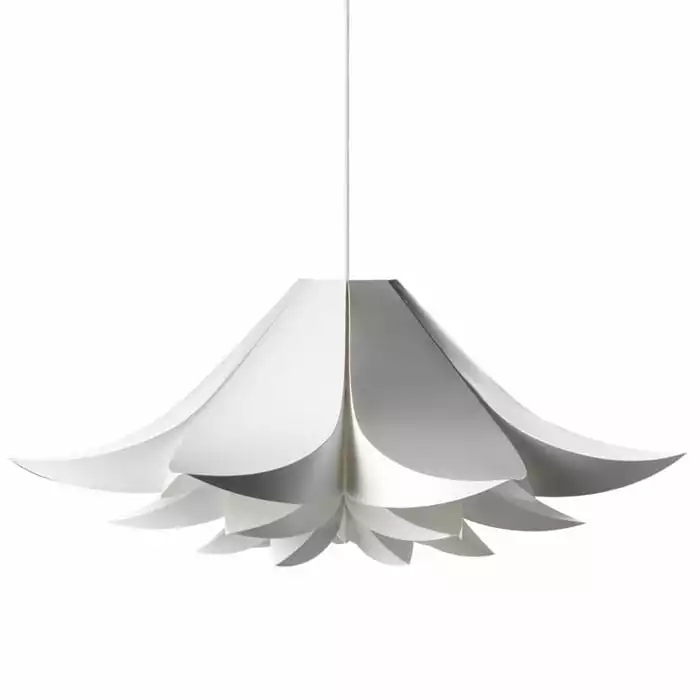 The amazing Norm 06 design by Simon Karkov for Normann Copenhagen. The sculptural design is inspired by nature and water lilies. The lamp creates a soft and beautiful light that fits most rooms, perfect to have above the table in the dining room or in the kitchen. You can easily mount it yourself without glue or tools. Made of lampshade foil.