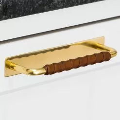 Beslag Design 1353-128 Leather Handle, Untreated Brass/Brown