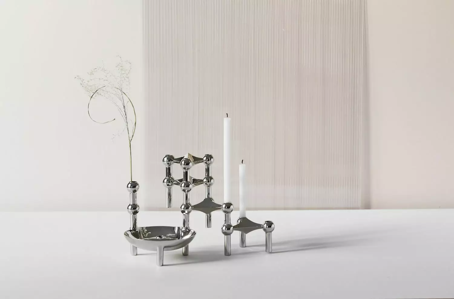 Nagel Candlestick from Stoff is a reproduction of Hans Nagel’s classic modular candlesticks from 1965, designed by Werner Stoff. Each candlestick is a module that can be combined with other modules into different shapes and heights. Create your own unique Nagel Candleholder with different modules and accessories such as the bowl and vase.